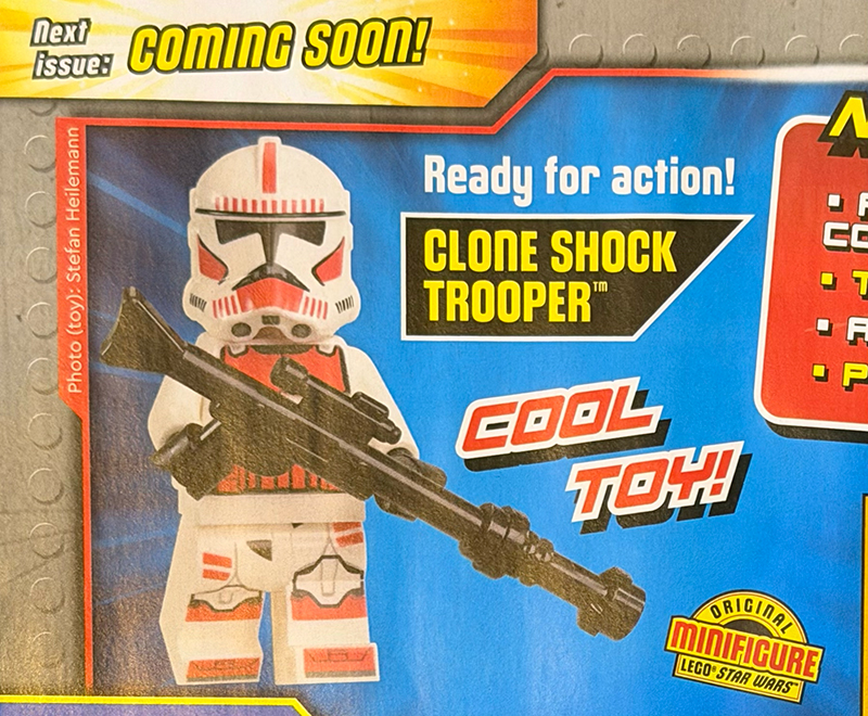 Issue #129, out in the second half of November, will feature a Clone Shock Trooper minifigure, as most recently found in the 2025 Clone Trooper & Battle Droid Battle Pack (75372) and as previously cover mounted on issue 106 of the LEGO Star Wars Magazine (March 2024) as the Coruscant Guard.