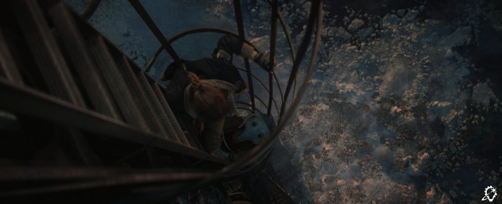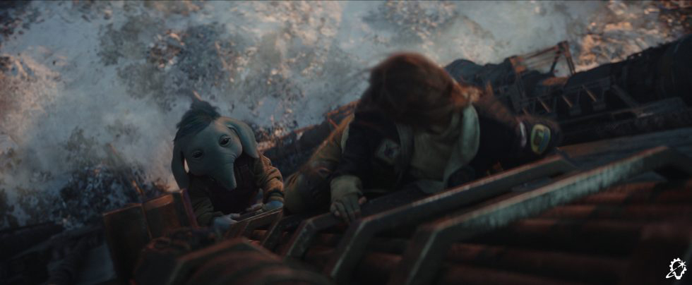 This process was utilized in “Zero Friends Again,” the sixth episode of Star Wars: Skeleton Crew (2024-25), for a sequence depicting Fern (Ryan Kiera Armstrong) and Neel (Robert Timothy Smith) as they ascend a ladder above the snowy plains of the planet Lanupa. A roundtable of ILM team members, including real time principal creative Landis Fields, environment supervisor Andy Proctor, technical artists Will Muto and Kate Gotfredson, and lead compositor Todd Vaziri, joined ILM.com to chat about trying out a new real-time workflow to craft the depth-defying ladder-climbing sequence in Skeleton Crew.